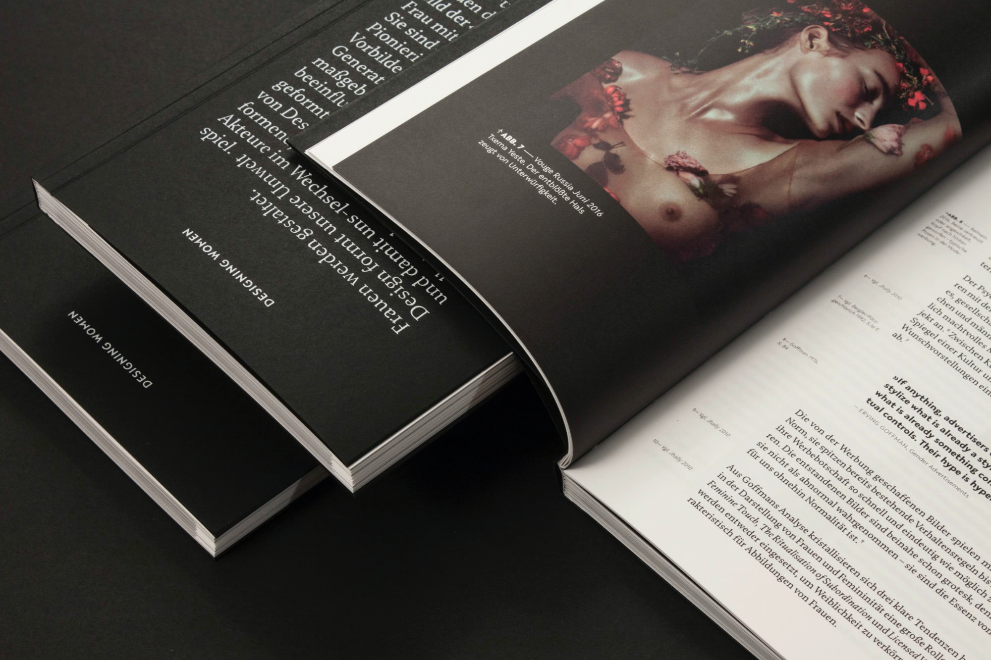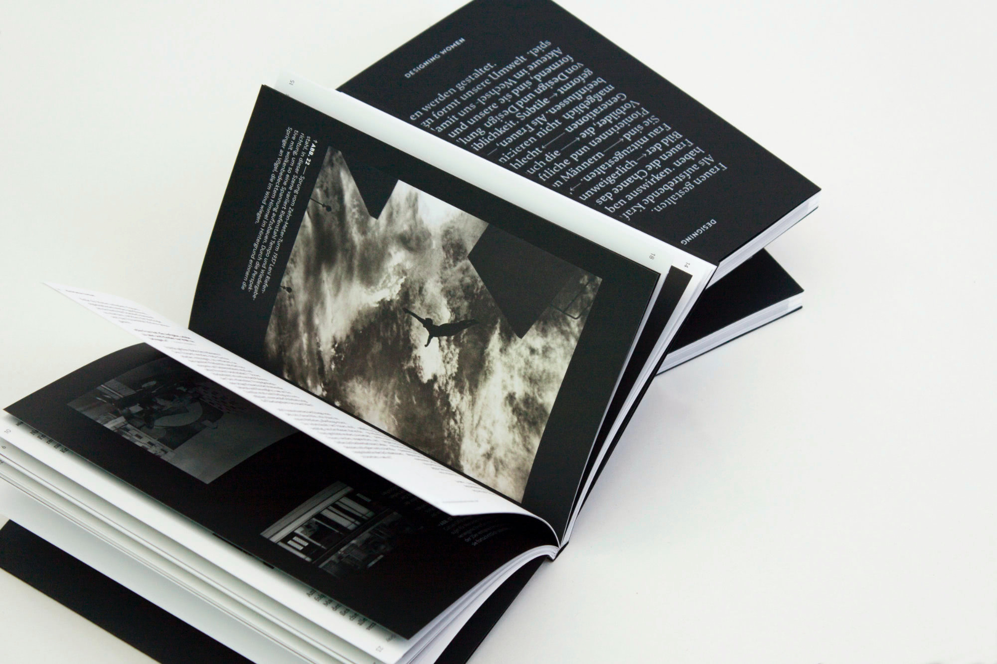 Women design, women are designed — as the title suggests, this work deals with the interaction between design and society with a focus on the depiction of women; with how design shapes the image of women, but also with how women as designers actively participate in this process and create a self-determined image of women. This interplay determines the constantly changing gender and power relations. Can design emancipate women? This question is explored in four sections: biological, social, artistic and historical factors are related and analysed. The topics versatility is also reflected in the book’s structure — the tête-bêche bound book can be read from both sides.