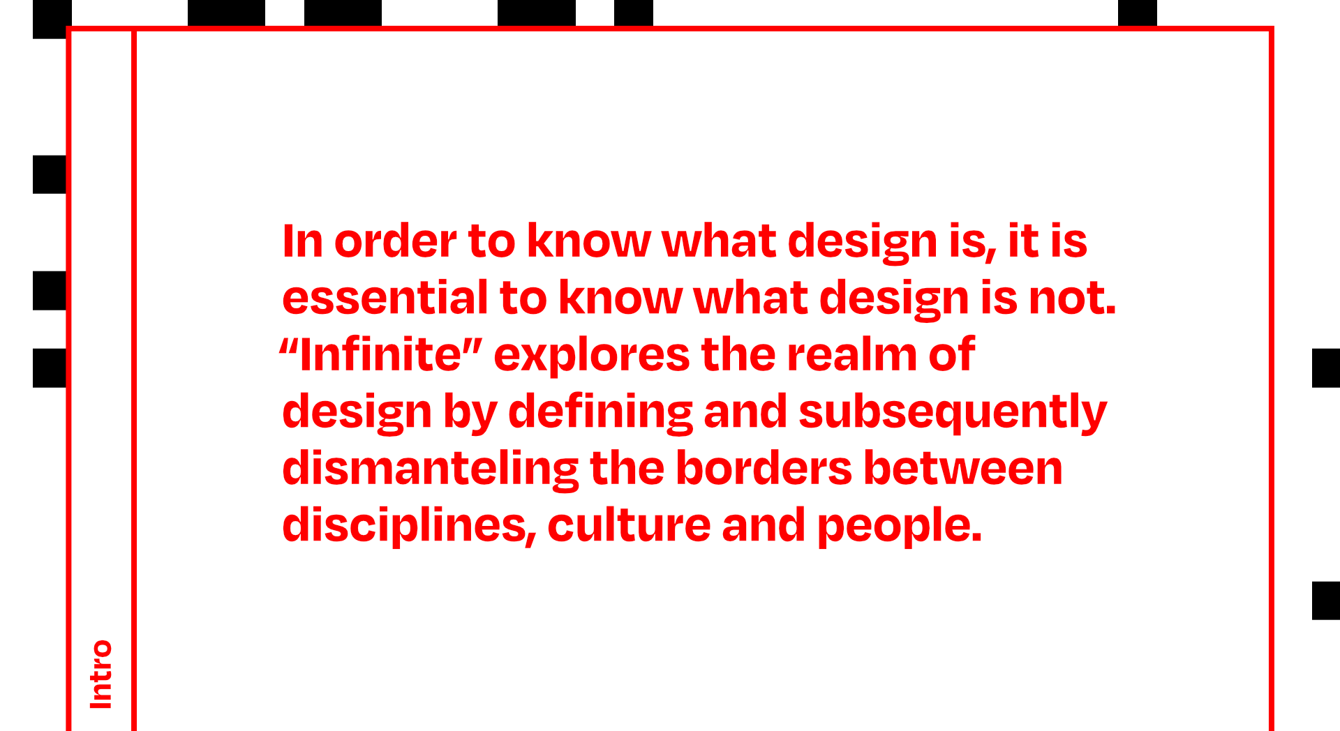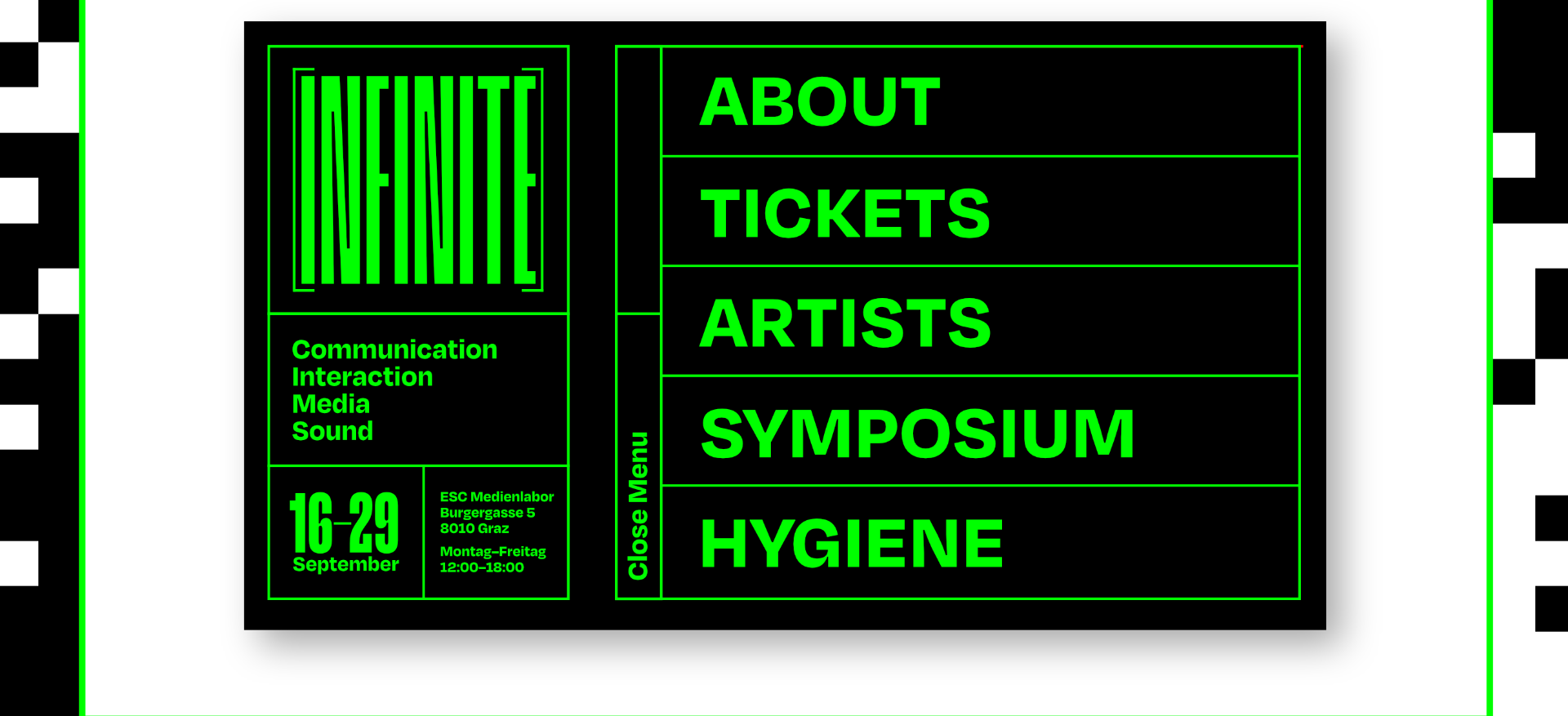 Infinite is a digital art exhibition that plays with how we create meaning by categorising and differentiating. These conceptual borders are arbitrary, change depending on context and thus lose absolute value.