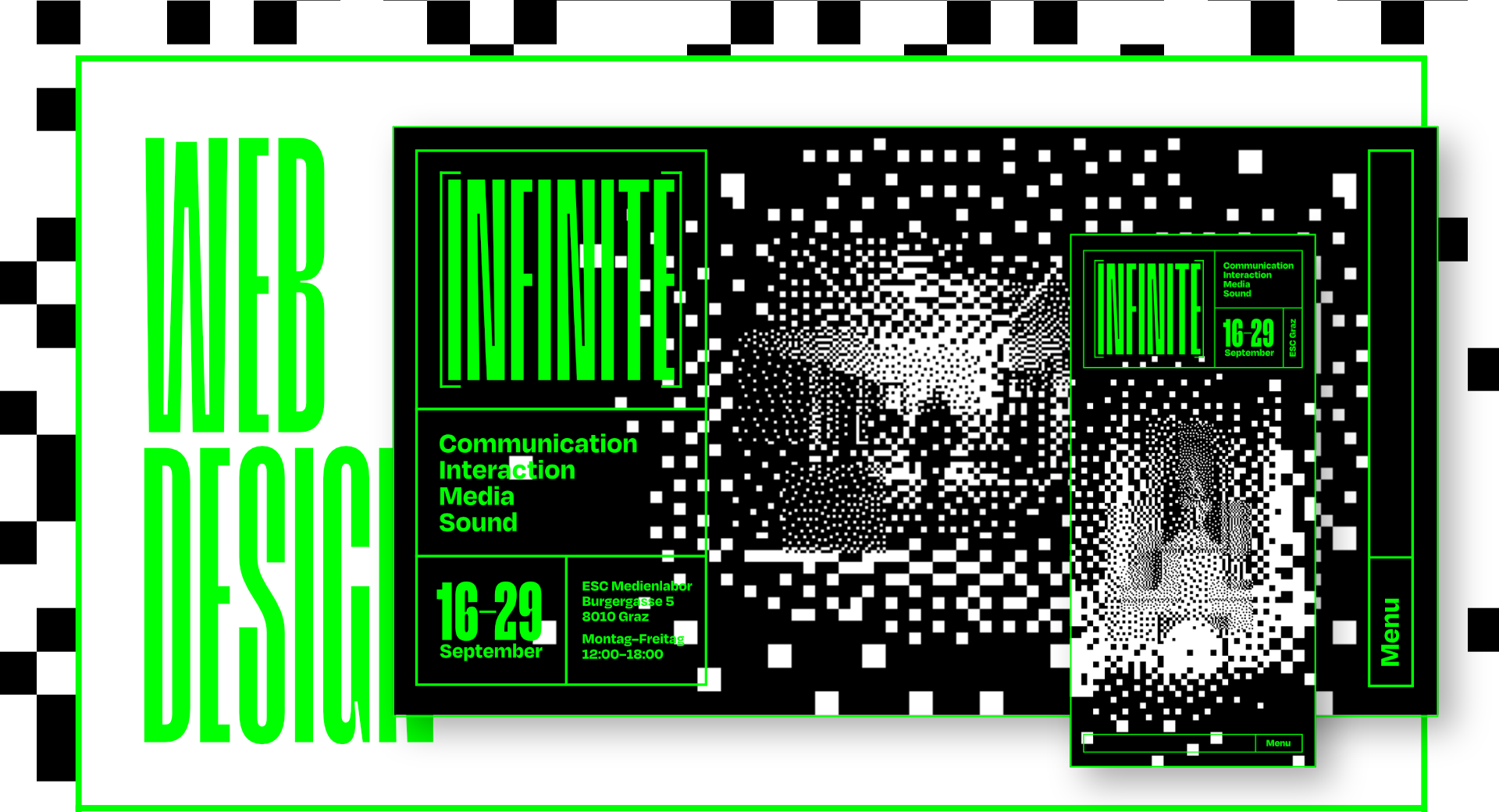 I used Processing to generate these dithered graphics quickly. The script automatically dithers, masks and animates the input image to create the final background graphic. The source code is publicly available on GitHub.