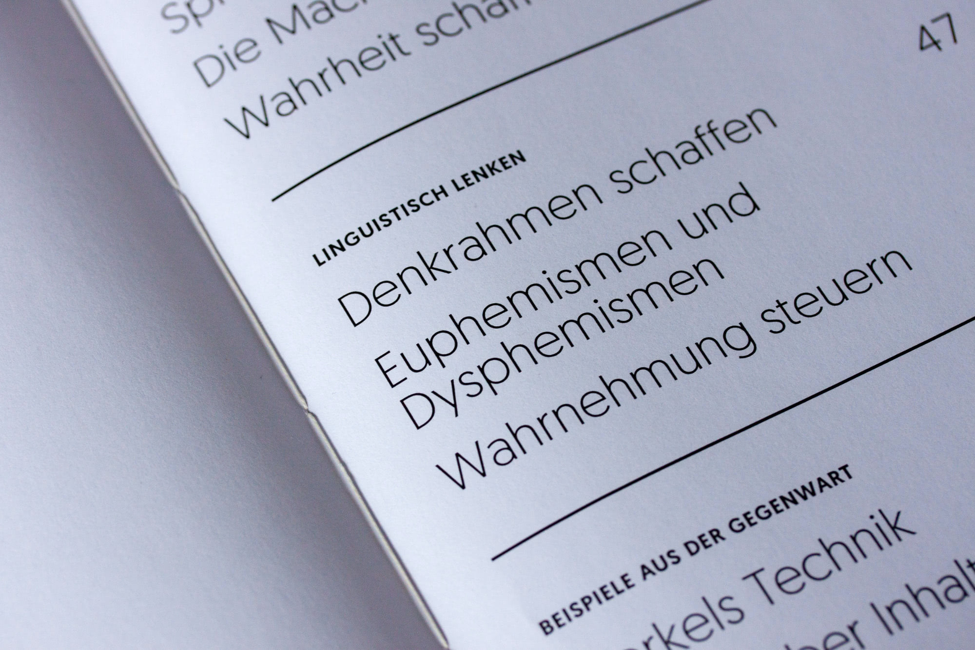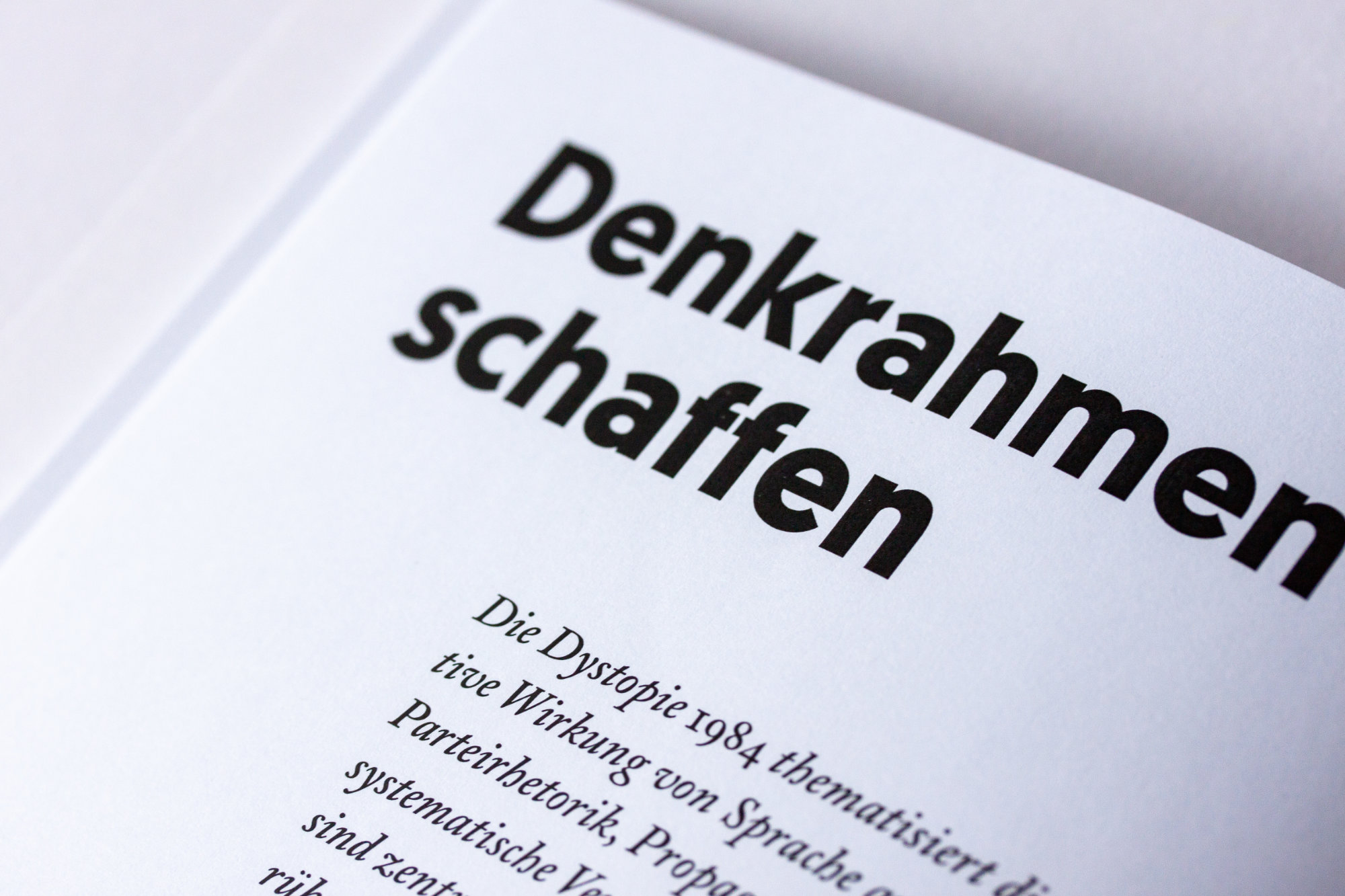 Sprache ist Wirklichkeit (Language is Truth) is a concept for a book about how language manipulates our thinking through framing. It is strongly inspired by George Orwell’s 1984.