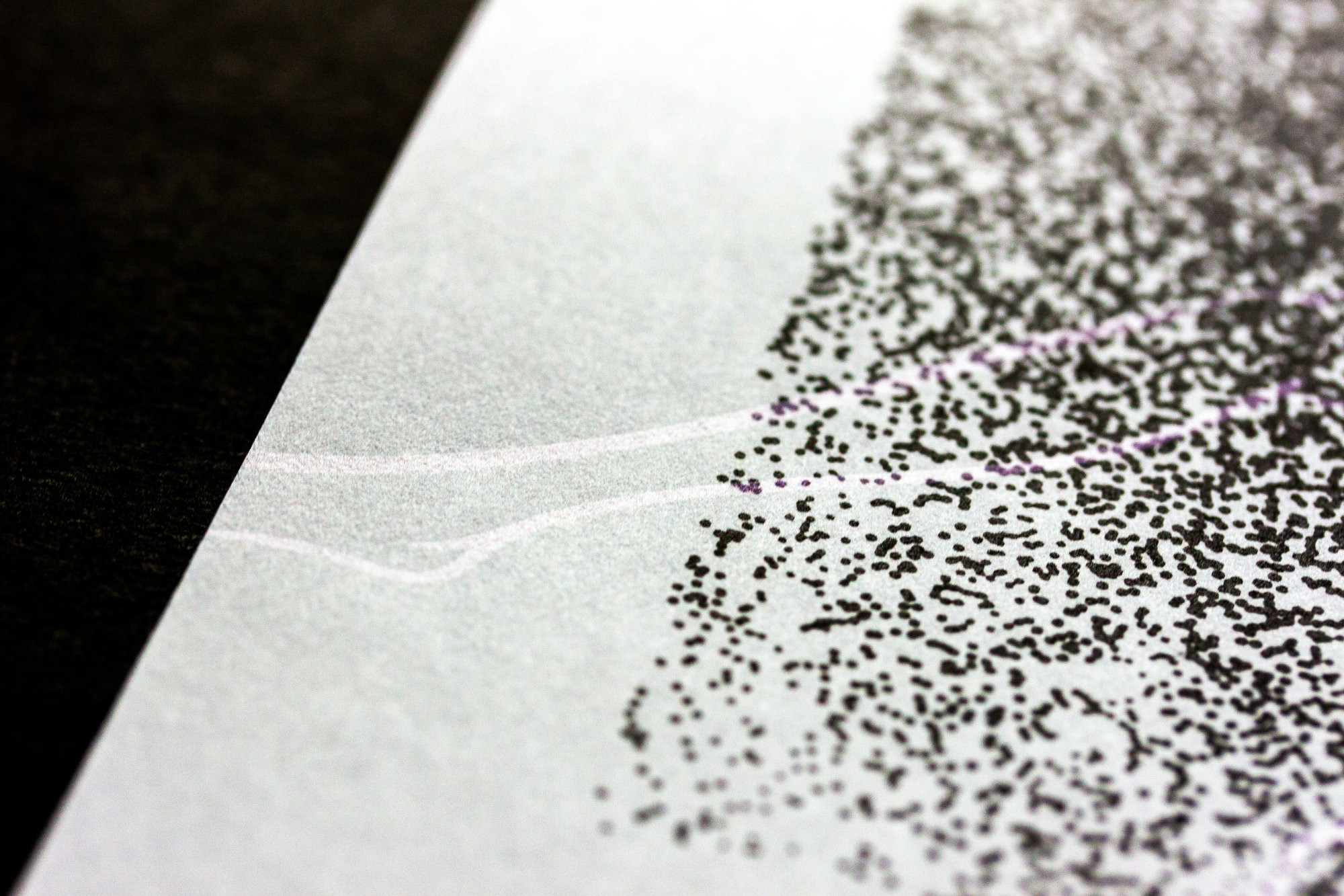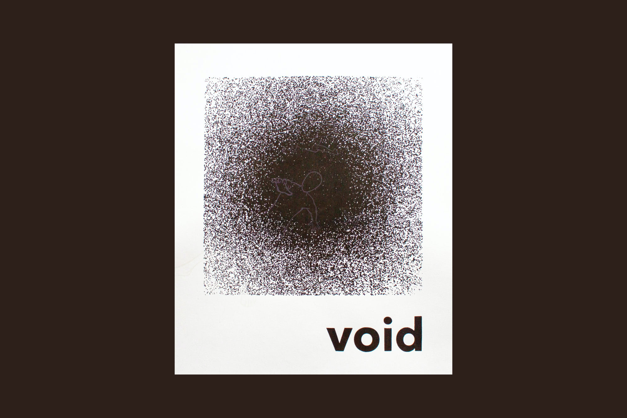 This artwork visualises the perceived gravity of emptiness and loneliness. In order to make the illustration’s most dominant element, the void, appear rough and brutal I chose to experiment with halftone patterns; this decision has also made it perfectly suitable for screen printing.